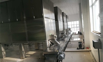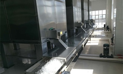 該項目為鄭州地區(qū)第一個嚴格按照SC標準建設的大型食用冰冰廠。項目特殊處在于,冰廠位于一棟大樓內部,單層面積不大。為了充分利用空間,制冰機與冰塊暫存及打包分置于相鄰兩層。并且,為了給客戶節(jié)省投入,4臺方冰機公用一臺大型主機,獨立部分只包含直接制冰的蒸發(fā)器。