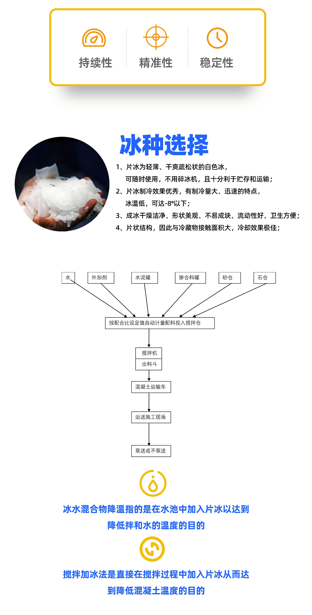 該系統(tǒng)通常具備自動儲存、抹平、出冰和有時還包括稱重功能,確保冰塊可以高效地被螺旋輸送機(jī)或氣動系統(tǒng)輸送到混凝土攪拌等作業(yè)點(diǎn)。