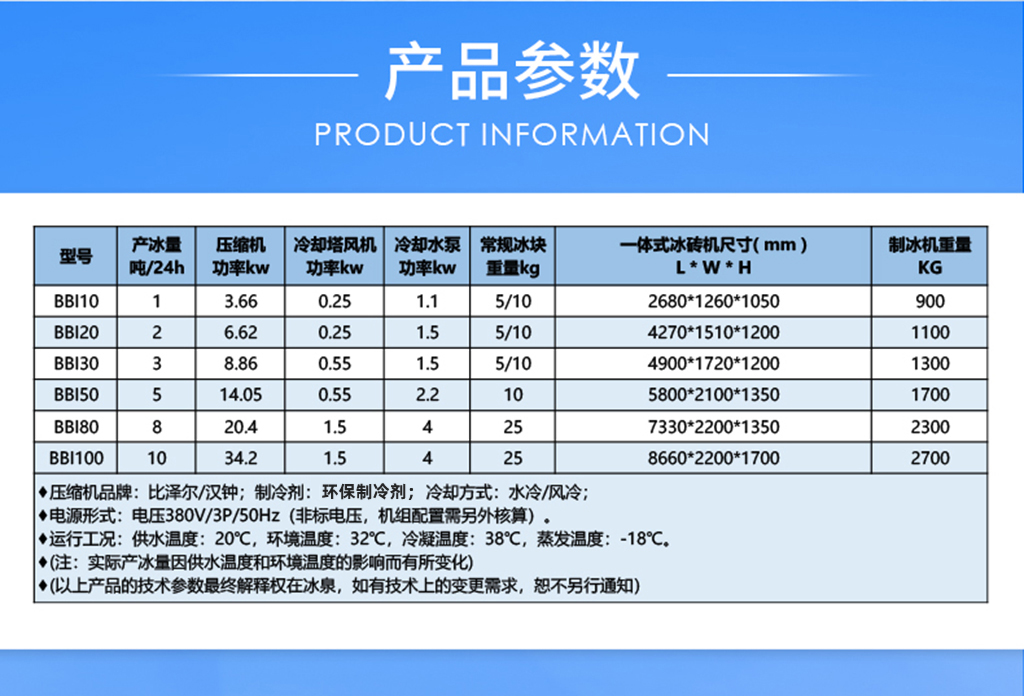 廣州冰泉是大型氟制冷冰磚機(jī)行業(yè)開(kāi)拓者,研發(fā)制造的全球第一臺(tái)日產(chǎn)冰量100噸的大型氟制冷冰磚機(jī)2010年在馬來(lái)西亞成功運(yùn)行。現(xiàn)單臺(tái)(套)設(shè)備日產(chǎn)冰量從1噸~200噸,可以滿(mǎn)足不同客戶(hù)需求。
