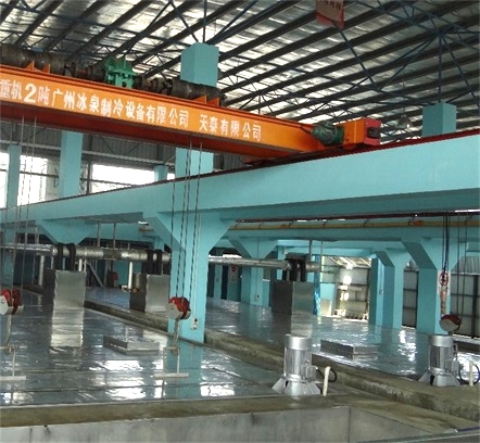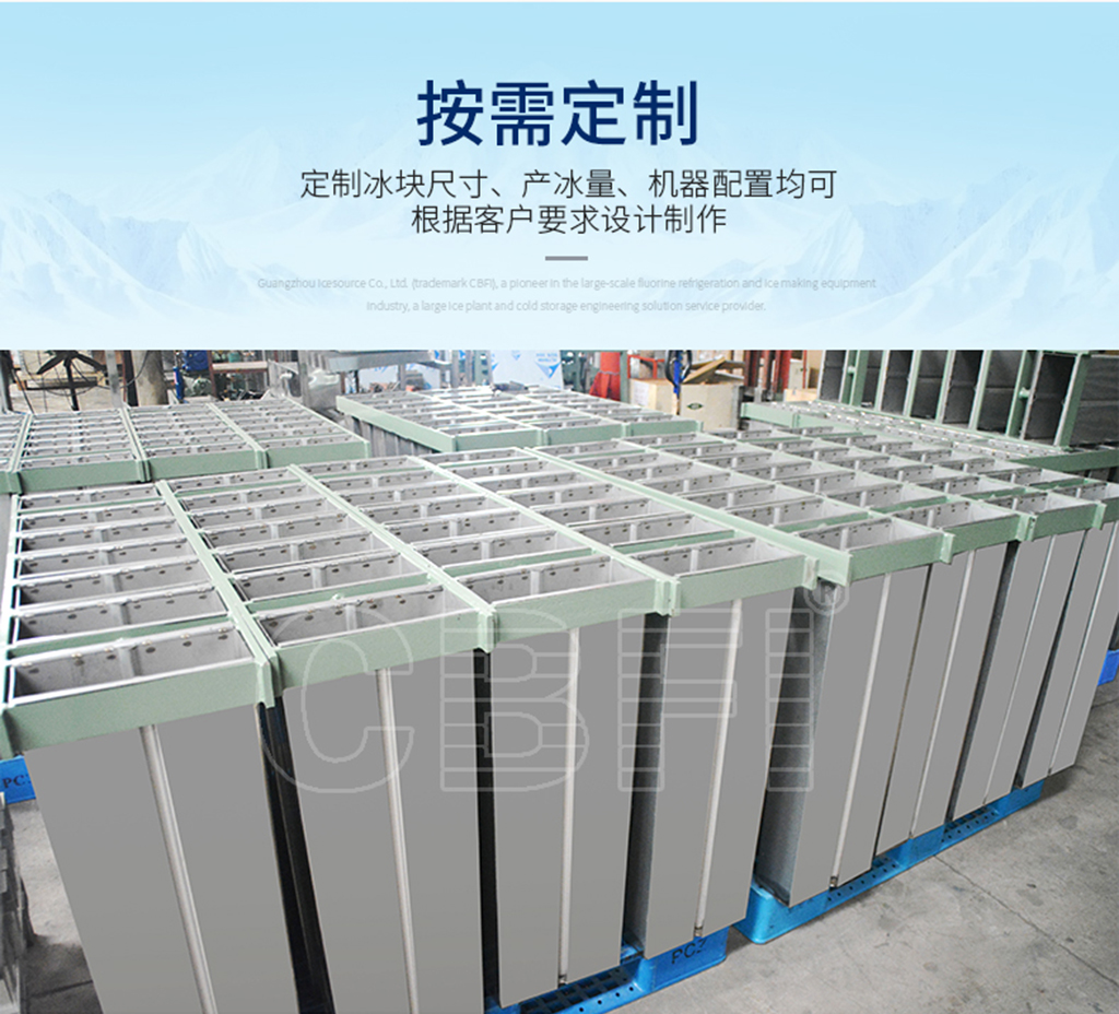 大型土建鹽水冰磚機(jī)即大噸位冰磚機(jī),采用磚石混凝土建筑鹽水池,通常配套大型行車(chē)系統(tǒng)。該種類(lèi)型的鹽水冰磚機(jī)多見(jiàn)于區(qū)域性大型冰磚制造廠(chǎng)。例如馬來(lái)西亞--100噸大型冰磚制冰廠(chǎng)項(xiàng)目 和 馬來(lái)西亞--60噸大型冰磚制冰廠(chǎng)項(xiàng)目 。