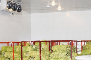 果蔬冷庫是指用于水果和蔬菜保鮮使用的冷庫,通過低溫可以降低病源菌的發(fā)生率和果蔬的腐爛率,同時減緩果蔬的呼吸代謝過程,從而達到阻止衰敗,延長貯藏期的目的。水果蔬菜的保鮮溫度范圍為0℃~15℃,不同的果蔬需要儲藏的溫度都不一樣,有些果蔬溫度過低的話,極易造成凍傷,最后失去經(jīng)濟價值,因此在果蔬進行冷庫保鮮,要非常注意溫度的選擇。
