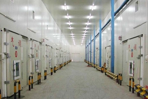 氣調(diào)庫又稱氣調(diào)貯藏是當(dāng)今最先進(jìn)的果蔬保鮮貯藏方法。它是在冷藏的基礎(chǔ)上,增加氣體成分調(diào)節(jié),通過對貯藏環(huán)境中溫度、濕度、二氧化碳、氧氣濃度和乙烯濃度等條件的控制,抑制果蔬呼吸作用,延緩其新陳代謝過程,更好地保持果蔬新鮮度和商品性,延長果蔬貯藏期和保鮮期(銷售貨架期)。通常氣調(diào)貯藏比普通冷藏可延長貯藏期0.5-1倍;氣調(diào)庫內(nèi)儲藏的果蔬,出庫后先從"休眠"狀態(tài)"蘇醒",這使果蔬出庫后保鮮期(銷售貨架期)可延長21~28天,是普通冷藏庫的3~4倍。氣調(diào)庫一般由氣密庫體、氣調(diào)系統(tǒng)、制冷系統(tǒng)、加濕系統(tǒng)、壓力平衡系統(tǒng)以及溫度、濕度、O2、CO2,氣體自動檢測控制系統(tǒng)構(gòu)成。