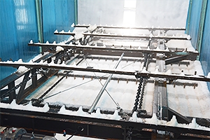 耙冰系統(tǒng)一般是與制冰設(shè)備配套使用,安裝在儲冰冷庫內(nèi)的,它有效的利用空間進行來儲冰。當(dāng)在短時間內(nèi)需要大量用冰的情況下,儲冰冷庫可以自動地輸送冰,以滿足用冰需求,儲冰運轉(zhuǎn)過程中,耙冰機構(gòu)將制冰機生產(chǎn)的冰在冰庫水平范圍內(nèi)耙平,達到冰庫存儲的上極限后,控制系統(tǒng)自動停止制冰機的運行。當(dāng)冰庫內(nèi)的冰位較低時,又將自動啟動制冰機。