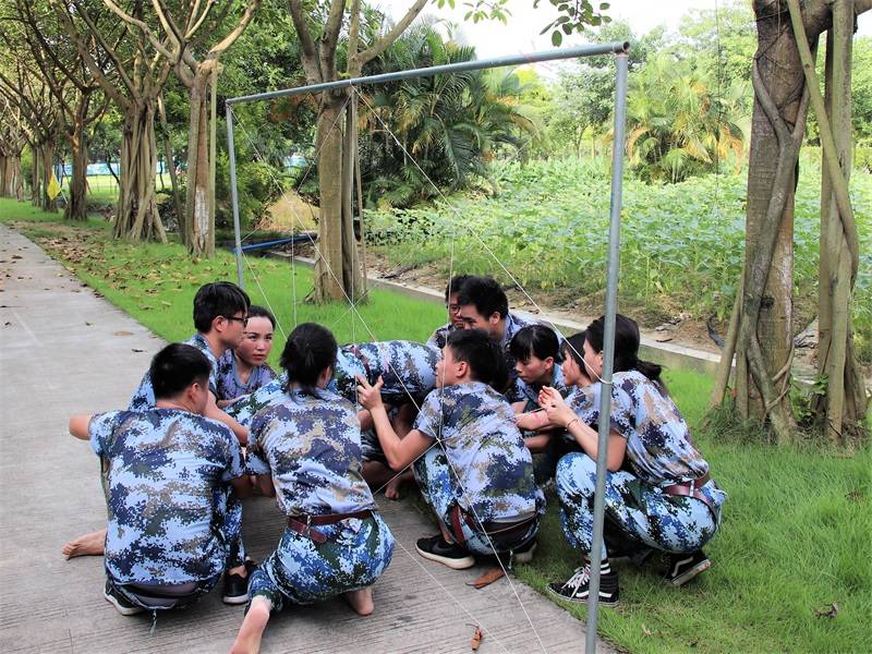 然后是“穿越電網(wǎng)”,任務(wù)是在規(guī)定的時(shí)間內(nèi),每一位隊(duì)員都穿越由不同面積空擋組成的“電網(wǎng)”,觸網(wǎng)者重新開(kāi)始。項(xiàng)目開(kāi)始后,大家討論方案,精密安排,共同配合,最終四個(gè)隊(duì)伍都提前全部通過(guò)。這個(gè)項(xiàng)目不僅考驗(yàn)了大家的分析和規(guī)劃能力,同時(shí)也考驗(yàn)和提升了團(tuán)隊(duì)合作能力。