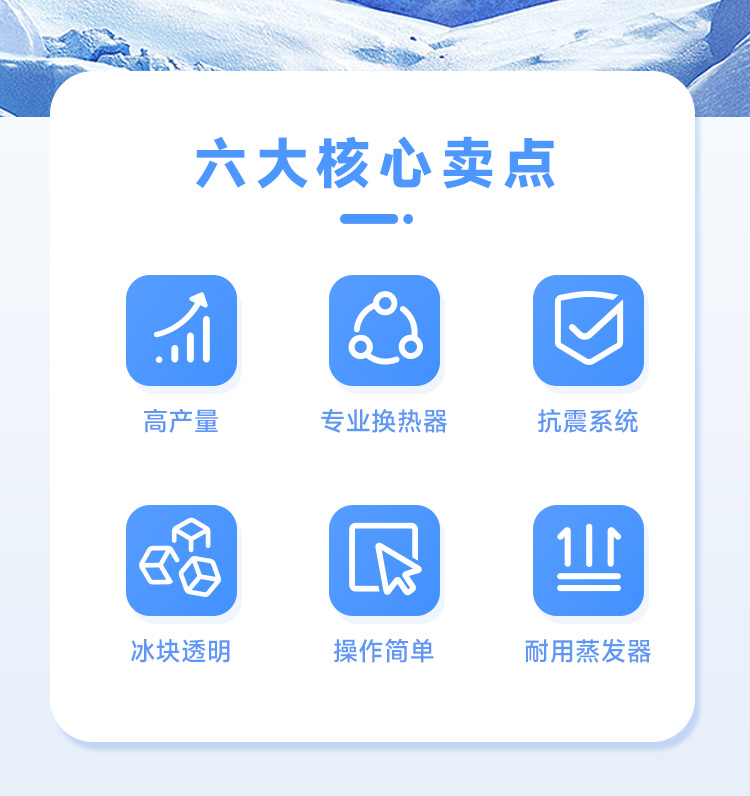 3.蒸發(fā)器材質(zhì)與設(shè)計(jì):選擇能獨(dú)立生產(chǎn)設(shè)計(jì)蒸發(fā)器的廠(chǎng)家,不銹鋼材質(zhì)為佳,以保證耐用性和冰塊質(zhì)量。