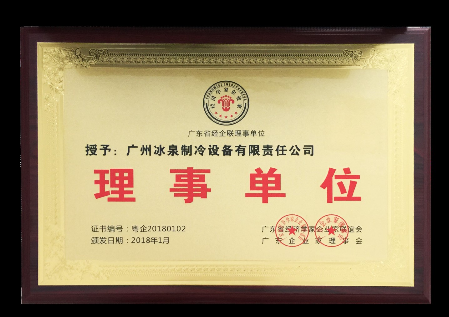最近,廣東省經(jīng)濟(jì)學(xué)家企業(yè)家聯(lián)誼會(huì)和廣東企業(yè)家理事會(huì)眾代表投票決定,選舉廣州冰泉制冷設(shè)備有限責(zé)任公司為理事單位。