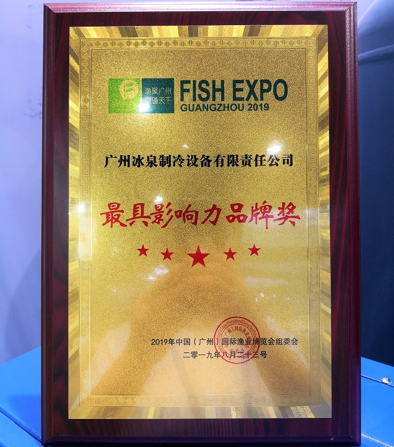 通過廣州國(guó)際漁博會(huì)組委會(huì)專家嚴(yán)格審評(píng),一致認(rèn)為冰泉制冷在制冰設(shè)備行業(yè)內(nèi)影響力較大,業(yè)績(jī)突出、社會(huì)反響良好,評(píng)選冰泉制冷為本次漁博會(huì)“最具影響力品牌獎(jiǎng)”。