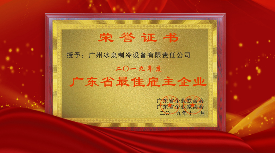 廣州冰泉制冷設(shè)備有限責(zé)任公司于近日榮獲2019年度“廣東省最佳雇主企業(yè)”稱號(hào)。該榮譽(yù)稱號(hào)由廣東省企業(yè)聯(lián)合會(huì),廣東省企業(yè)家協(xié)會(huì)聯(lián)合授予。此稱號(hào)的獲得是通過各行業(yè)協(xié)會(huì)推薦,第三方學(xué)術(shù)機(jī)構(gòu)評(píng)分而最終確定。榮獲這一稱號(hào)也充分肯定了冰泉制冷在營(yíng)造優(yōu)異工作環(huán)境、打造企業(yè)文化、完善培訓(xùn)晉升機(jī)制及薪酬激勵(lì)等方面獲得的成就。