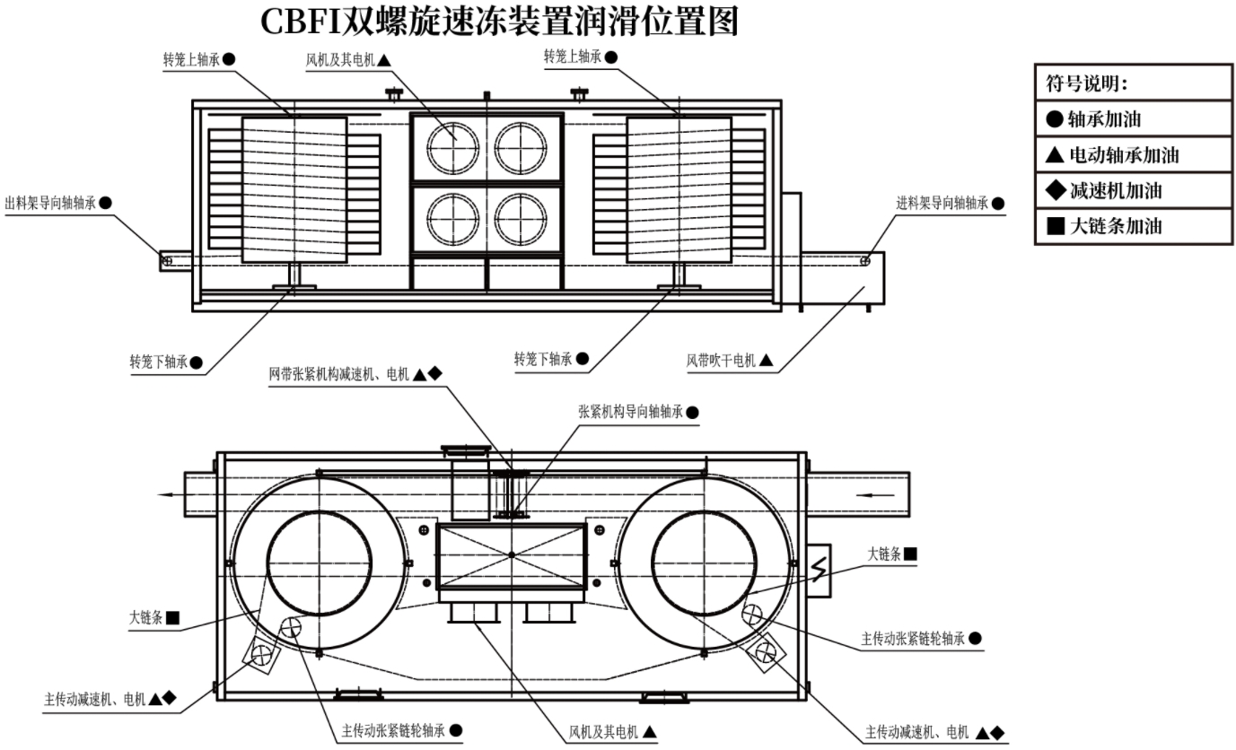 △ 雙螺旋速凍裝置-潤(rùn)滑位置圖 △